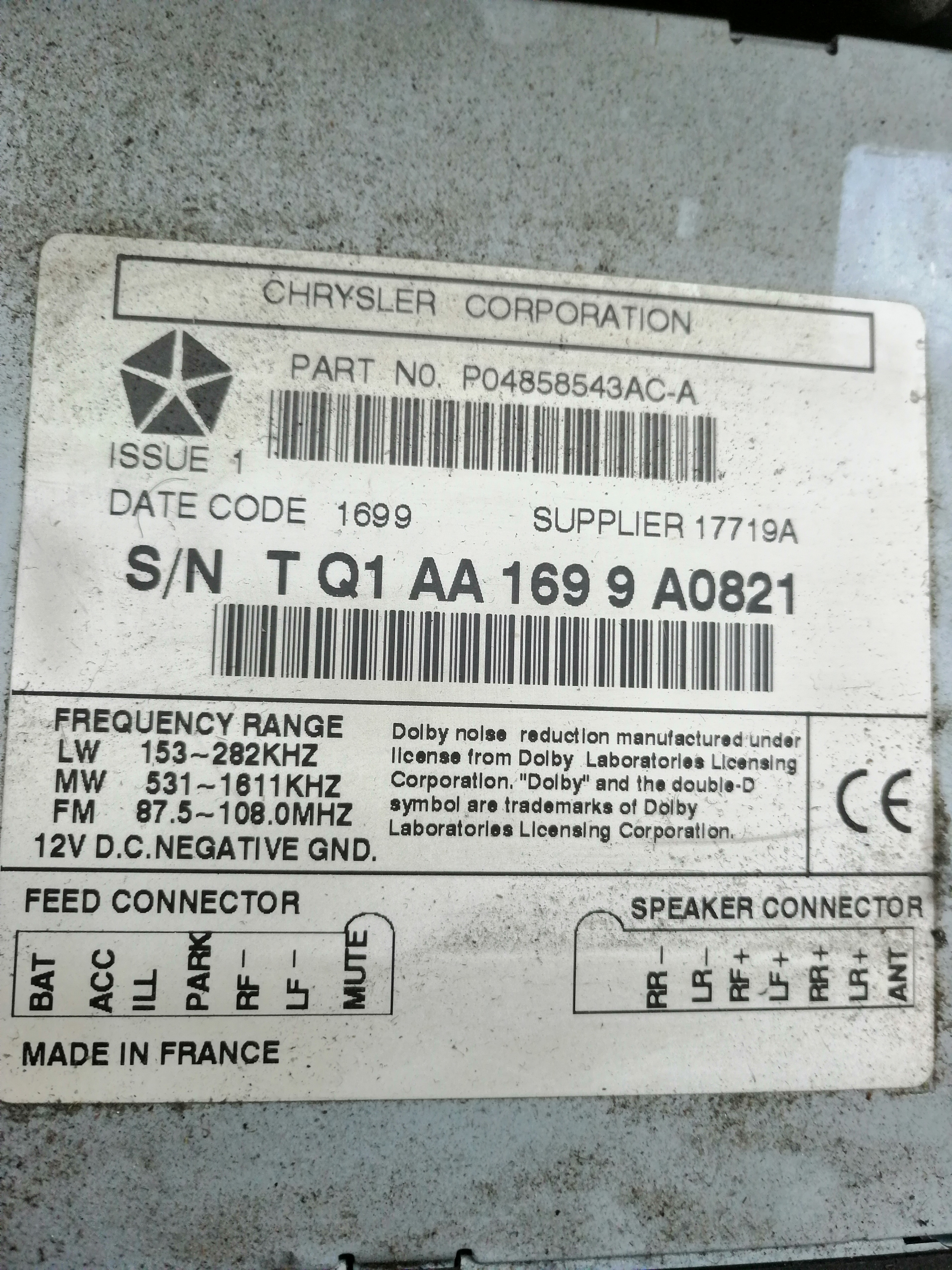 Kod do radia Chrysler 300m