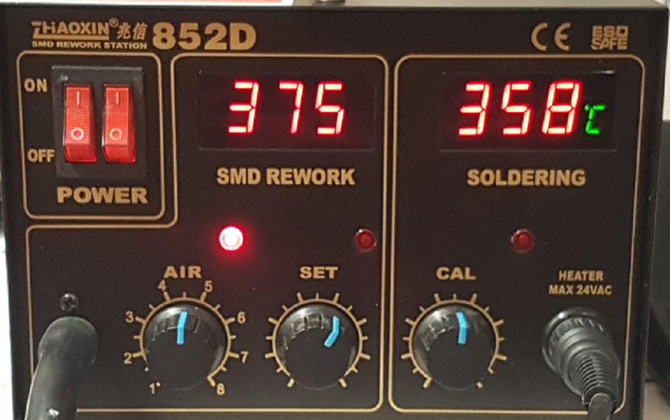 Stacja lutownicza posiada wbudowane dwa wyświetlacze LED informujący o nastawionej temperaturze gorącego powietrza oraz lutownicy grotowej. Urządzenie posiada regulacje siły nadmuchu Hot-Air. Wydmuch powietrza realizowany jest poprzez kompresor.