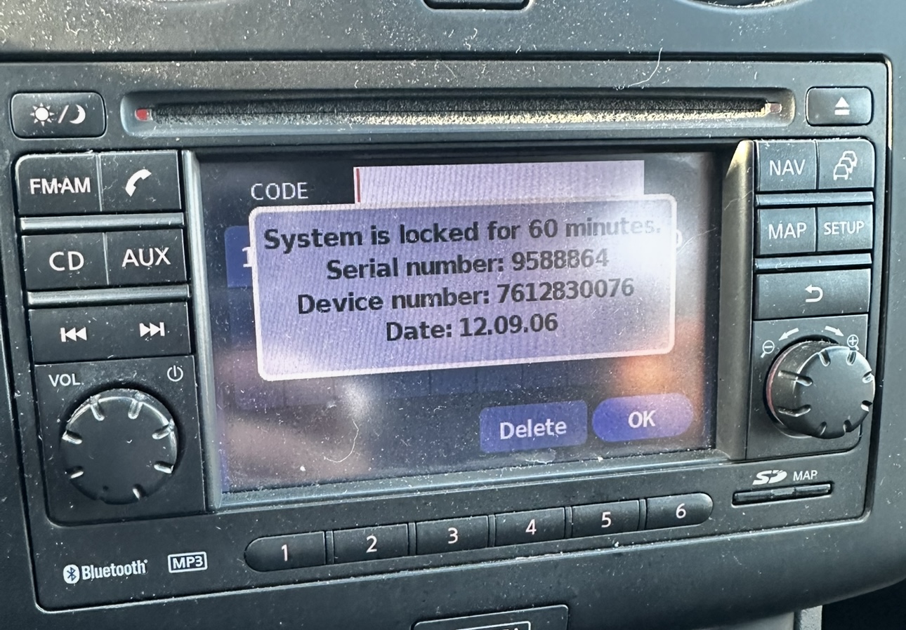 proszę o pomoc w uzyskaniu kodu do radia. Nissan Connect (LCN1)