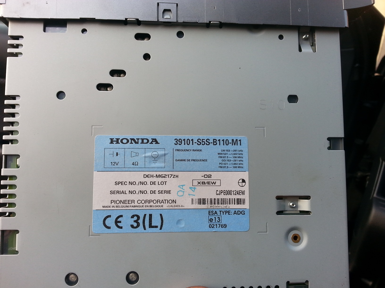 Kod do radia Hondy pioneer DEH-M6217ZH