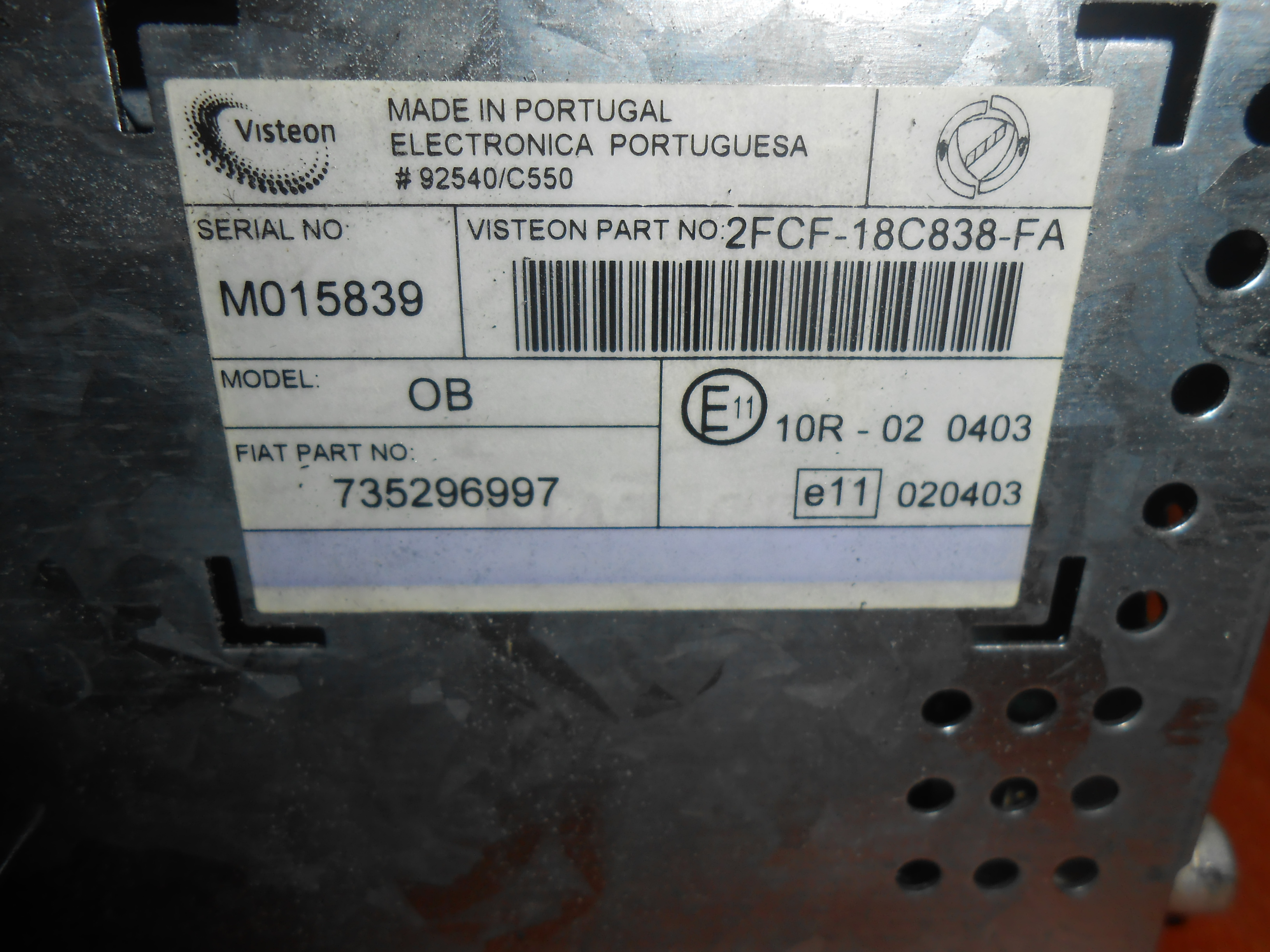 SERIA : M123156 PARTIA : 98AP-18K876-BC