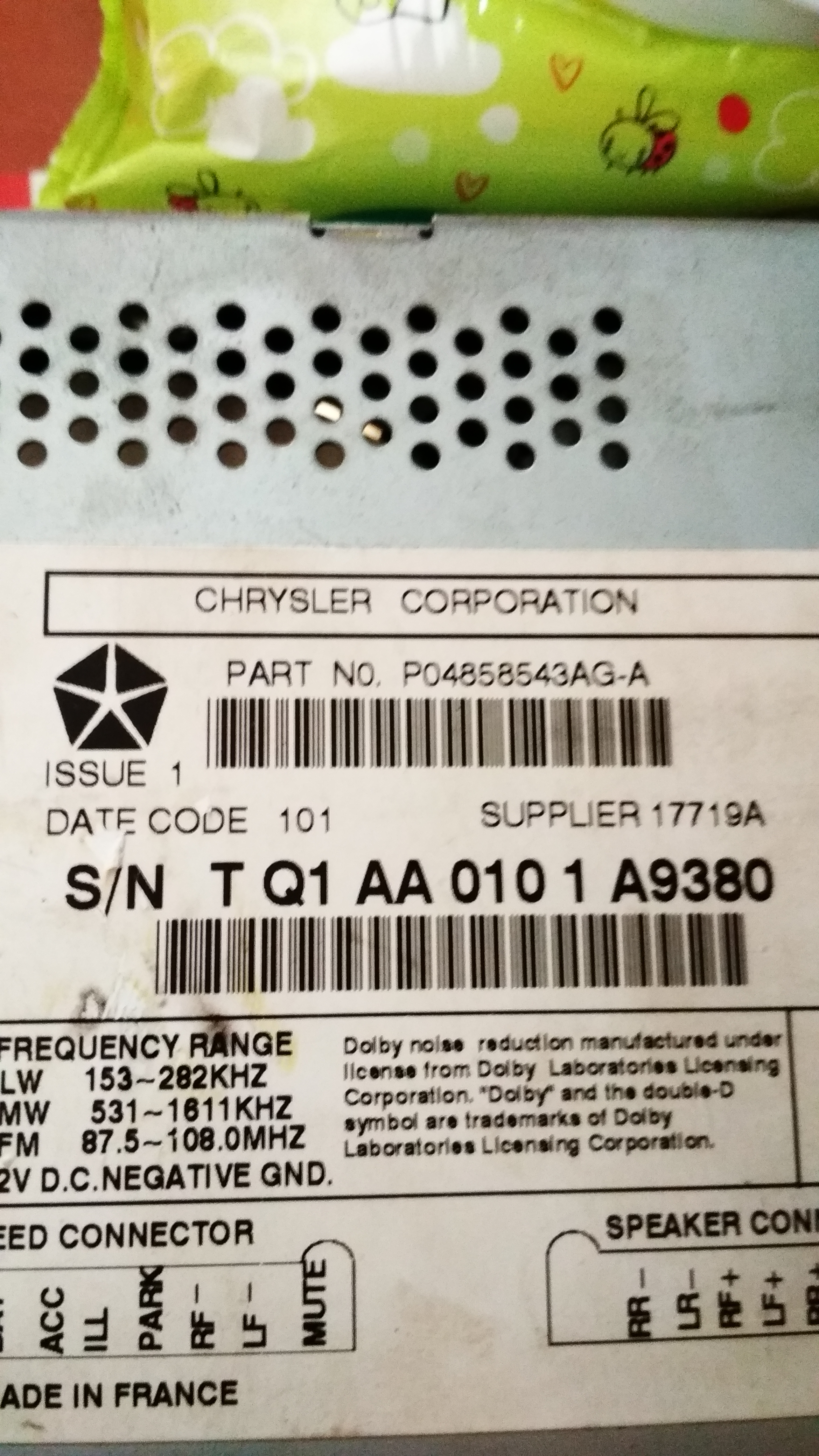 Code radio Chrysler Pt Cruiser
