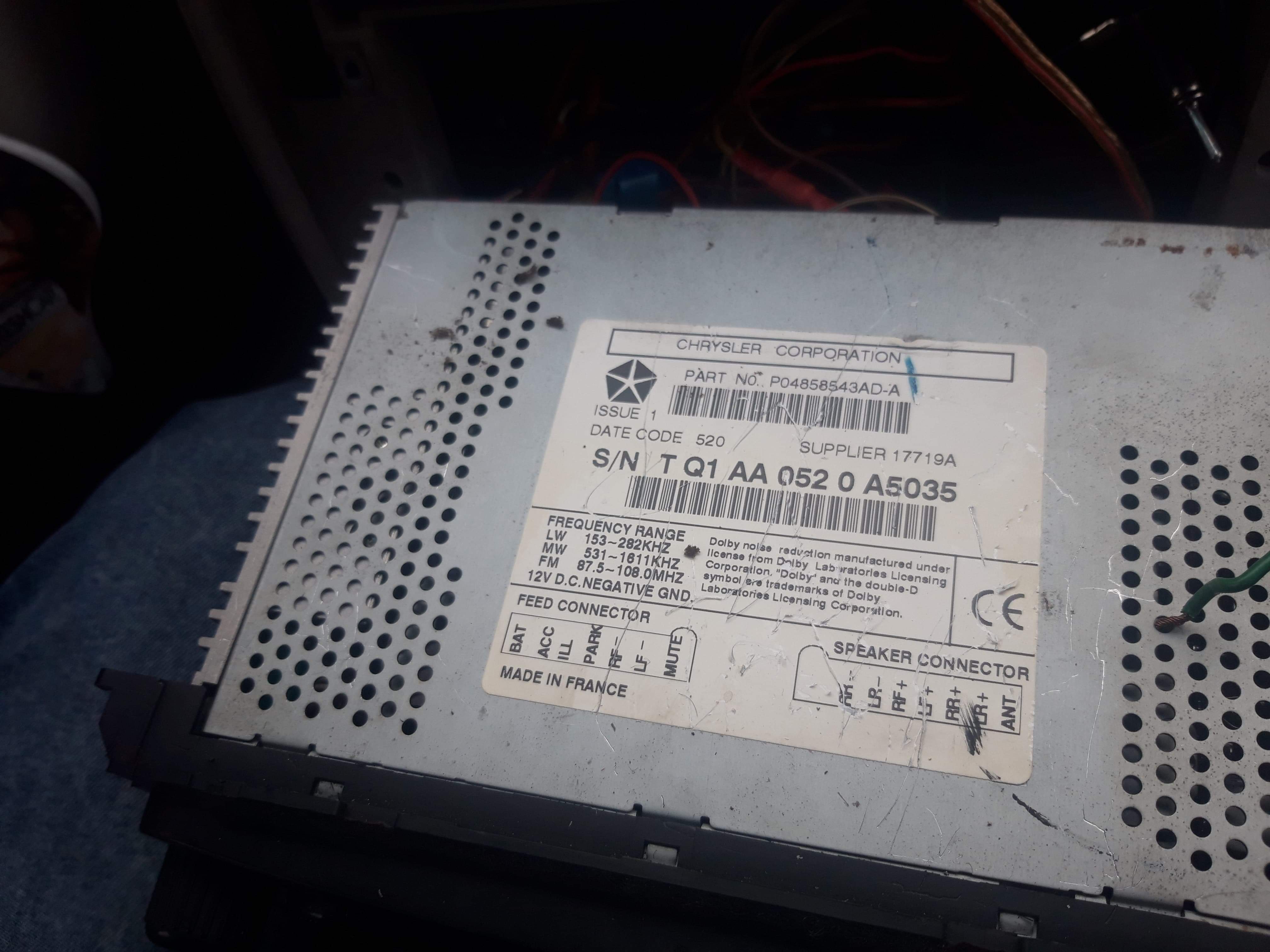 Kod do radia Chrysler pt cruiser