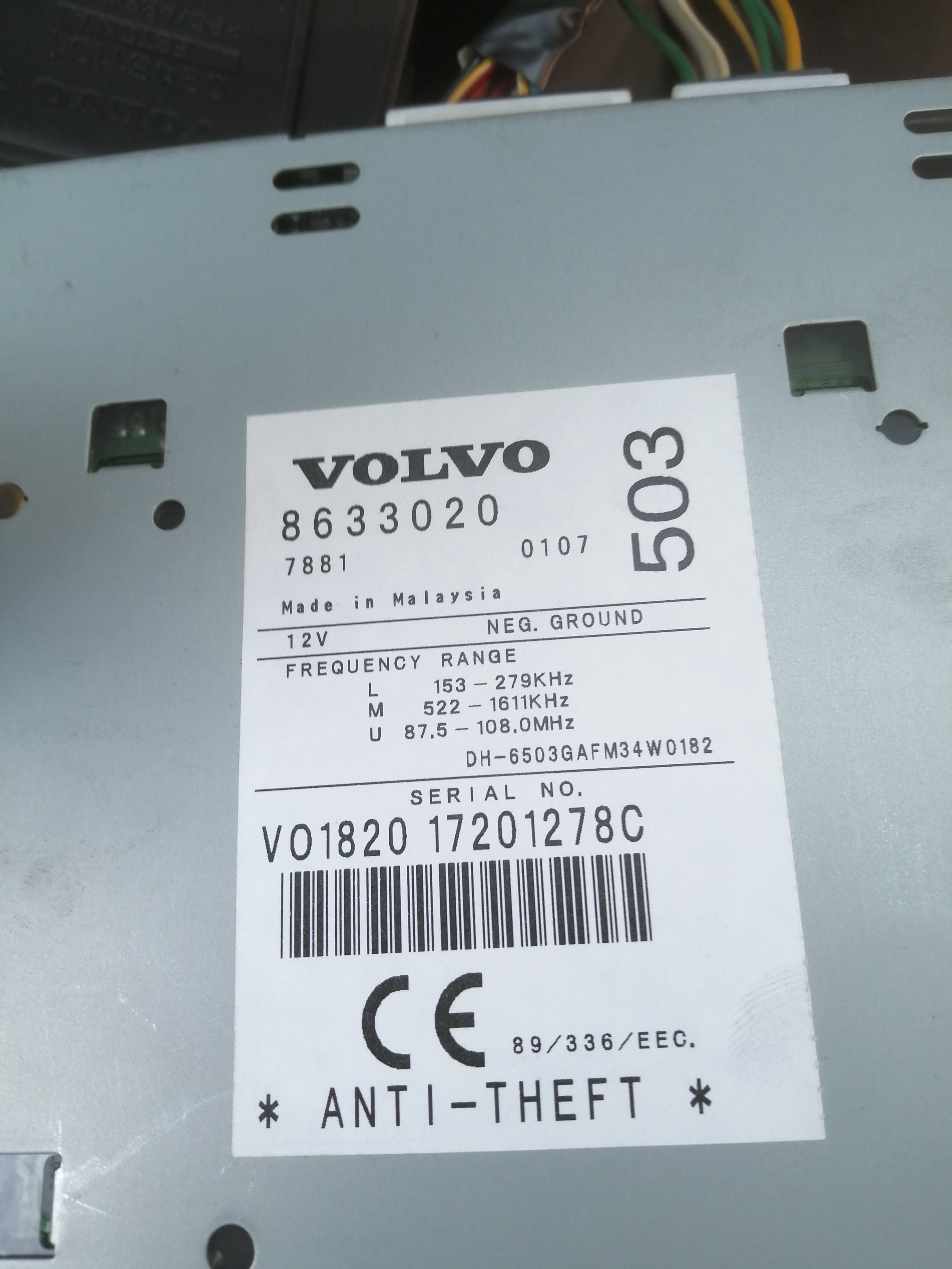 Odczyt kodu z pamięci eeprom radia lub autoryzowany serwis Volvo.