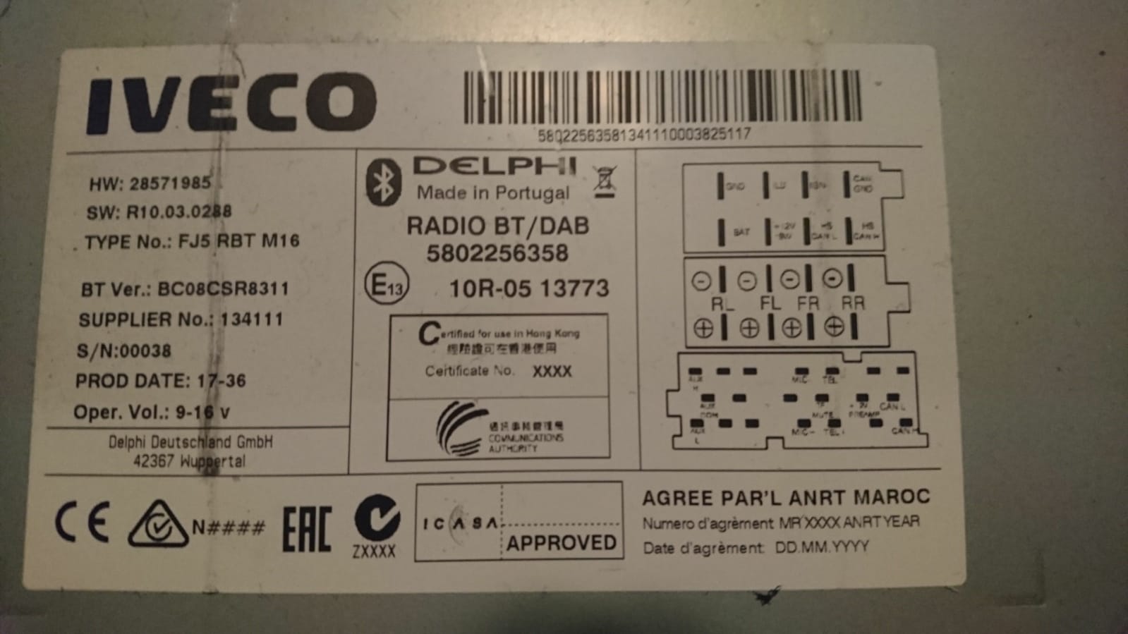 potrzebuje kod do radia Bosch w Iveco Daily, ponieważ gdzieś zgubiłem kartkę z kodem. Poniżej zdjęcia z danymi radia.