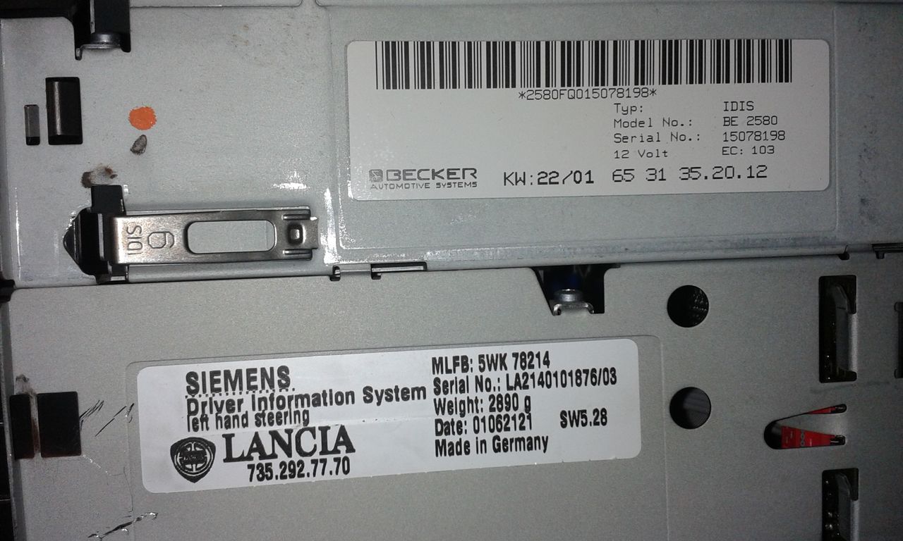 Kod do ICS i NAVI Lancia Lybra Radio Becker 2580