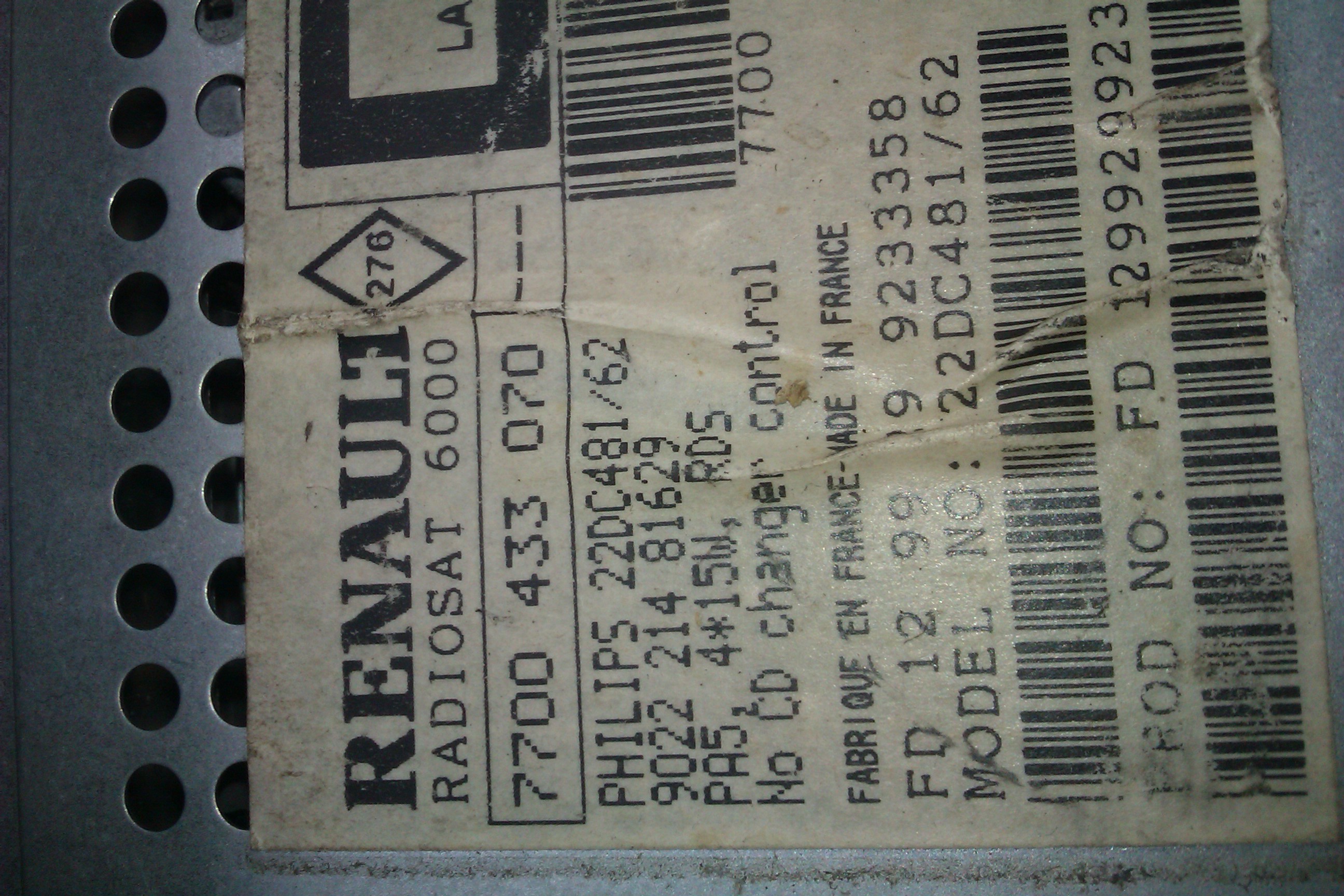 Kod do radia radia radiosat 6000 w renault megane